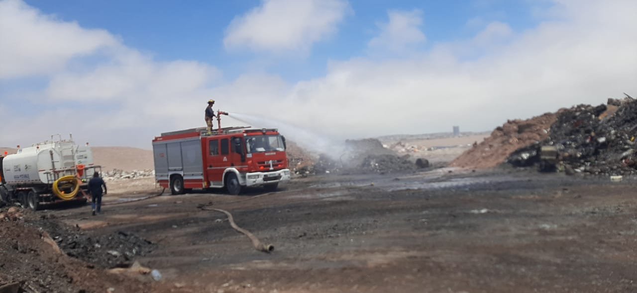 Municipalidad de Alto Hospicio a través de la Dirección de Seguridad Pública y el Departamento de Gestión de Riesgos y Desastres, trabajó en coordinación con Bomberos del Cuerpo de Bomberos de Alto Hospicio de La Pampa y Cuerpo de Bomberos de Santa Rosa de Huantajaya, en la emergencia por quema de basura y neumáticos registrada en el sector de la ruta A-16 con A-610, donde se ubica un ex vertedero clandestino.