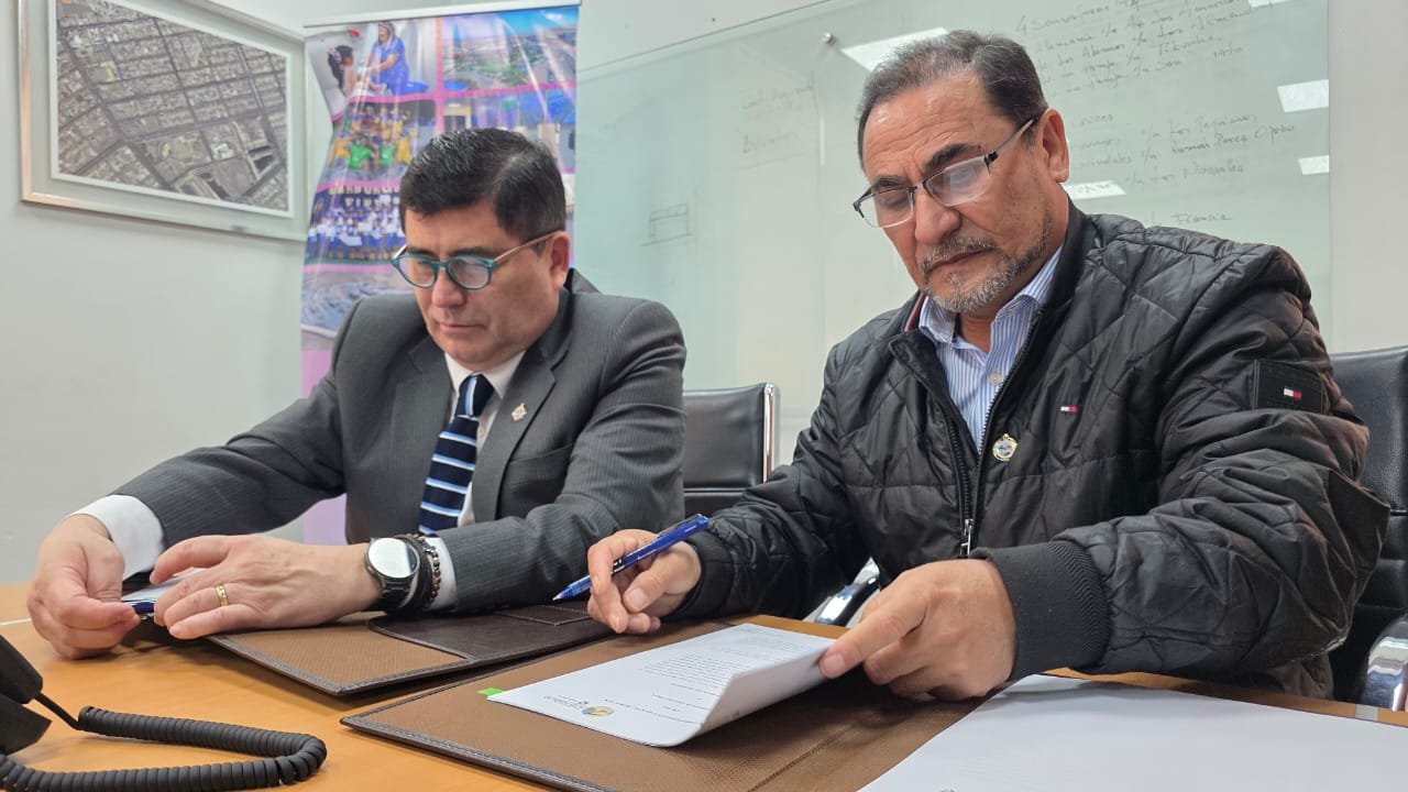 En la ceremonia de firma de convenio realizado en la sala de alcaldía, también