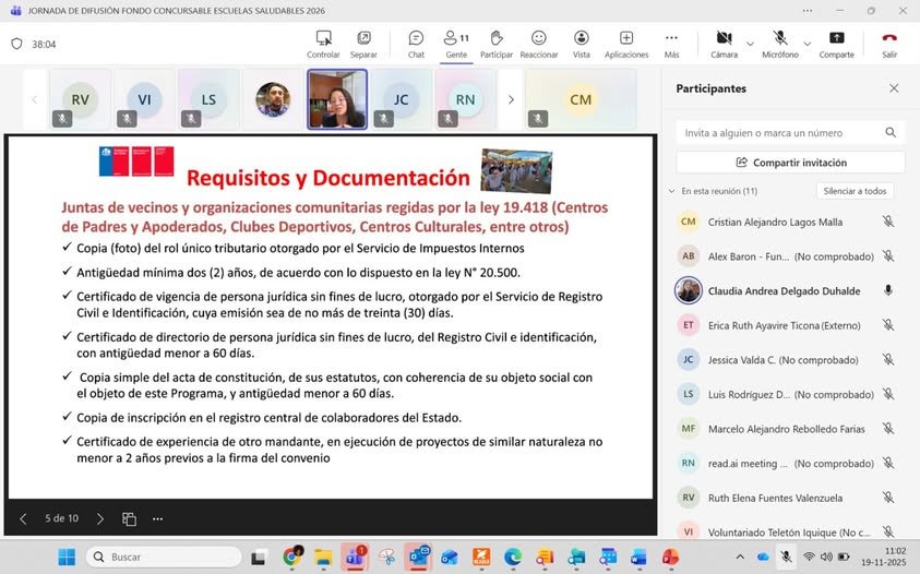 La Junta Nacional de Auxilio Escolar y Becas (Junaeb) Tarapacá, ha comenzado el proceso de postulación al fondo Comunidad Activa en su línea “Escuelas Saludables 2026”. Este fondo proporciona recursos para llevar a cabo proyectos que brinden a los estudiantes de la región experiencias innovadoras, lúdicas y comunitarias. Para dar inicio a los procesos de difusión, JUNAEB Tarapacá realizó jornada junto a instituciones sin fines de lucro de las comunas de Iquique y Alto Hospicio a fin de dar a conocer los procesos y requisitos para la presentación de proyectos “Escuelas Saludables 2026”.
