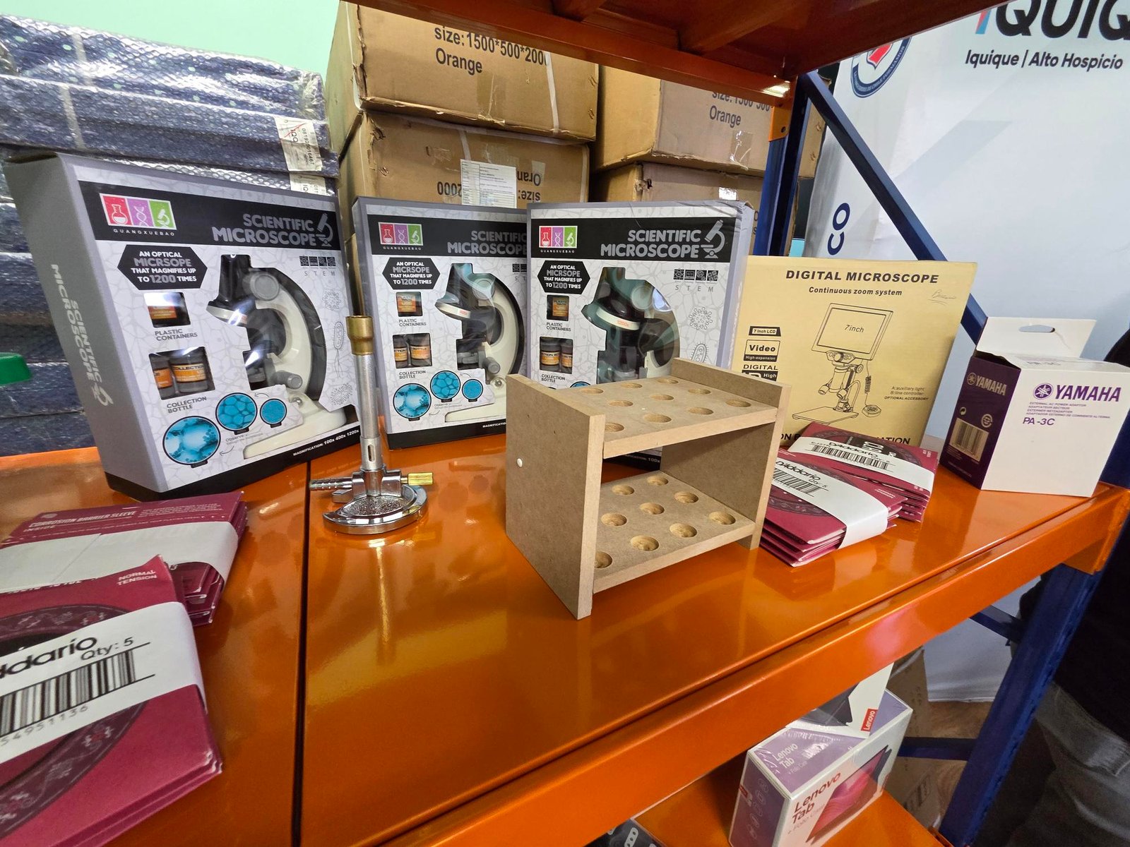 Los insumos entregados consideran materiales de ciencias y laboratorio, como microscopios ópticos LED, tubos de ensayo, mecheros Bunsen, probetas, reactivos y lupa binocular; instrumentos y accesorios musicales, entre ellos guitarras clásicas, teclados digitales, boquillas, cañas y cuerdas; además de equipamiento tecnológico y mobiliario educativo, como tablets, soportes móviles para TV, estanterías, extensiones eléctricas y material de apoyo pedagógico, que apoyarán el trabajo docente en aulas, laboratorios y actividades pedagógicas dentro y fuera del establecimiento, incluyendo acciones vinculadas a artes, cultura, deporte y desarrollo integral.
